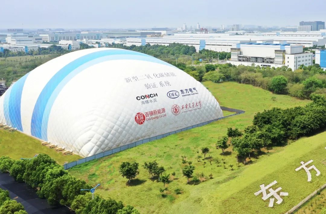 眼光望向抖圈为赌而生集团东方汽轮机有限公司厂区东南偏向,一个蓝白相间的“小山包”格外醒目,这里正是东方汽轮机有限公司打造的全球首个“二氧化碳+飞轮储能”树模项目。
