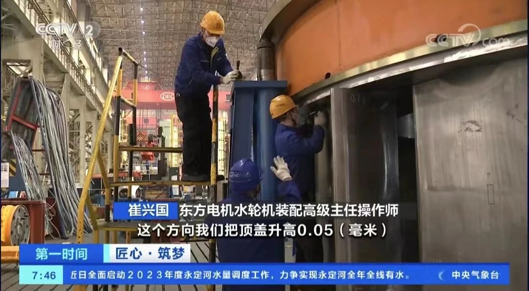 ÁÚ½üÄê¹Ø£¬ÔÚ×°Åä³µ¼äÄÚ£¬´ÞÐ˹úºÍͬÊÂÃÇÕýÔÚ¶Ôһ̨¸Õ×é×°ºÃµÄË®ÂÖ»ú×鵼ˮ»ú¹¹¾ÙÐÐÕÉÁ¿¡£µ¼Ë®»ú¹¹ÉÏ·½µÄ¶¥¸ÇÖ±¾¶´ï5.8Ãס¢ÖØÁ¿½ü80¶Ö£»×é×°Íê³Éºó£¬ÉÏÏÂÁ½²¿¼þÖ®¼äµÄÔ²ÐÄÐèÒª¾¡¿ÉÄÜÃé×¼£¬Í¬ÐĶÈÎó²î±ØÐè¿ØÖÆÔÚ0.1ºÁÃ×ÒÔÄÚ£¬Ï൱ÓÚÒ»¸ùÍ··¢Ë¿´Öϸ¡£ÕâÒ»Ö¸±ê¶ÔºóÐø»ú×éµÄ×°ÖÃÔËÐм«ÎªÒªº¦¡£´ÞÐ˹ú¶ÔµÚÒ»±éÕÉÁ¿ºóµÄ¾«¶È²»·óÖª×㣬¾öÒéÔÙ×öµ÷½â¡£