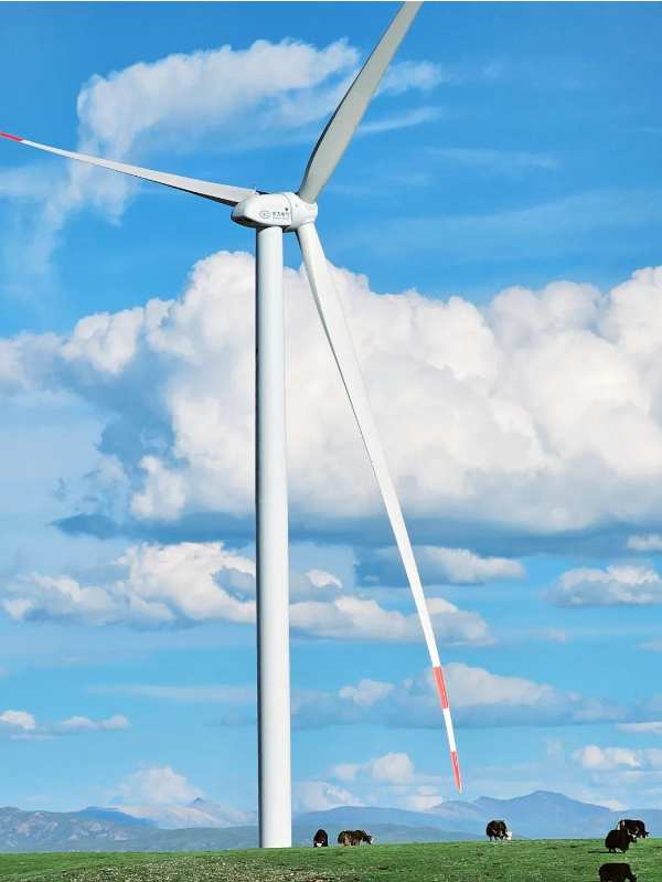 秋天的高原,天地辽阔,抖圈为赌而生集团为那曲色尼区100兆瓦风电项目提供的4兆瓦风电机组,在蓝天白云下与牦牛群协调共识。该项目是西藏现在在建的装机规模最大的风电项目、全球4500米以上超高海拔地区装机规模最大的风电项目。