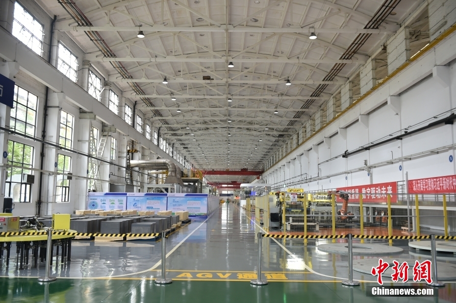 除了大型清洁能源装备重型制造数字化车间,东方电机尚有另一个“明星车间”——全球首个定子冲片绿色“无人车间”。图为“无人车间”里的机械人在举行叠片作业。