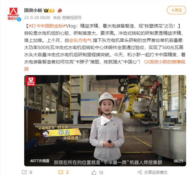 [国资小新]#打卡中国新坐标#Vlog:字斟句酌,看水电装备智造,观“铁壁绣花”之功!
