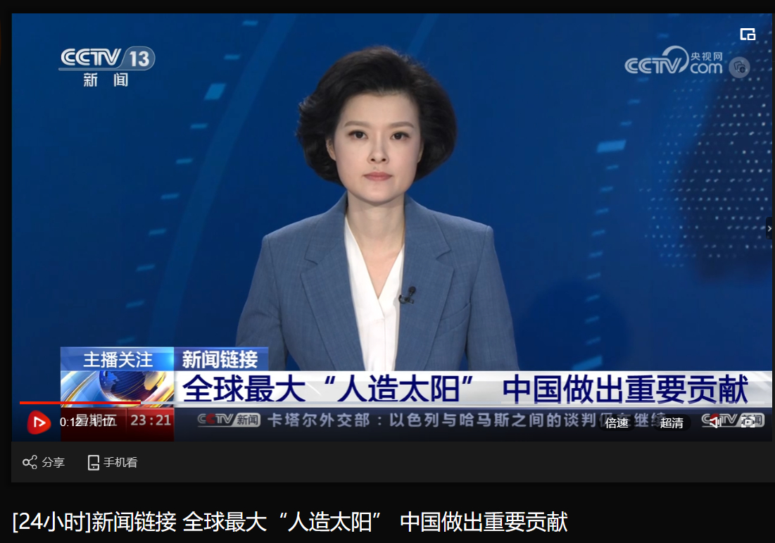 [央视24小时]新闻链接 全球最大“人造太阳” 中国做出主要孝顺
