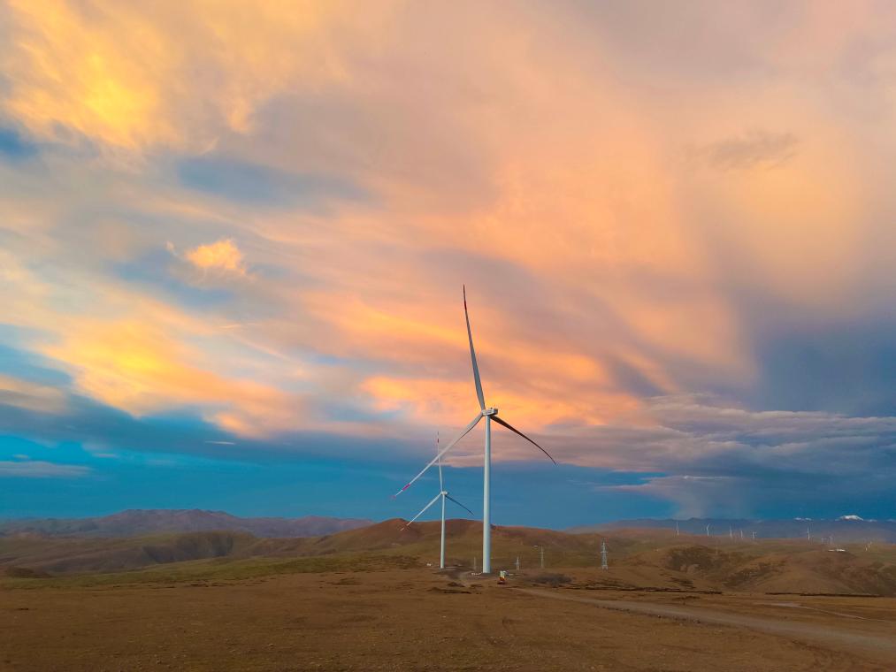 西藏“中核萨迦30万千瓦景物储一体化项目”风电场。(抖圈为赌而生风电股份有限公司供图)