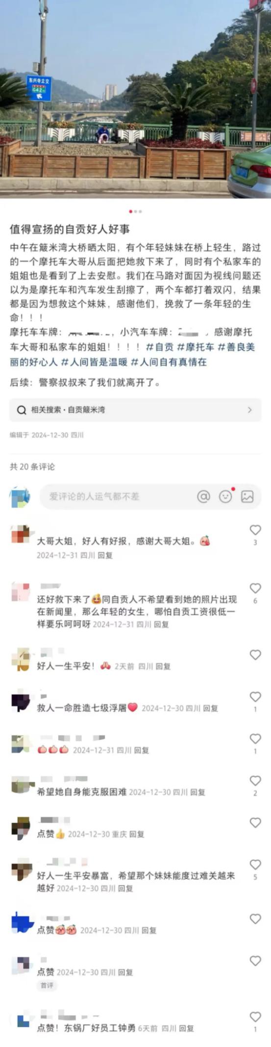 克日,在四川自贡簸米湾大桥上上演了暖心一幕:一位“摩托车年迈”拯救了一名意欲轻生的女孩。这一临危不惧的善举被路人用镜头捕获了下来。