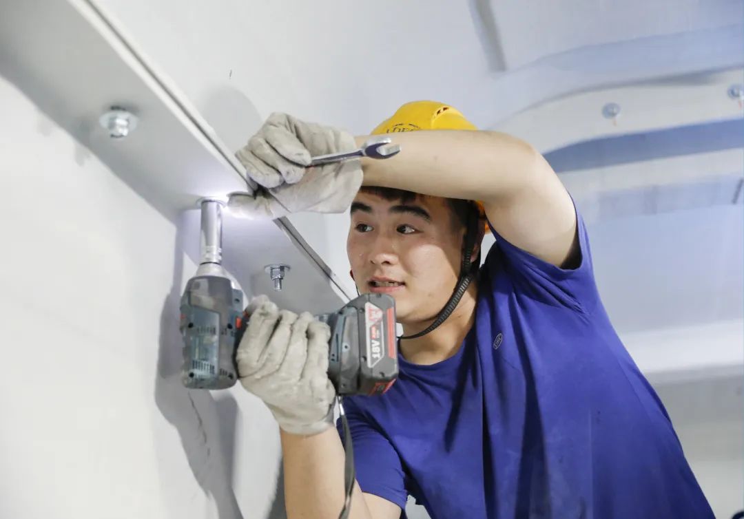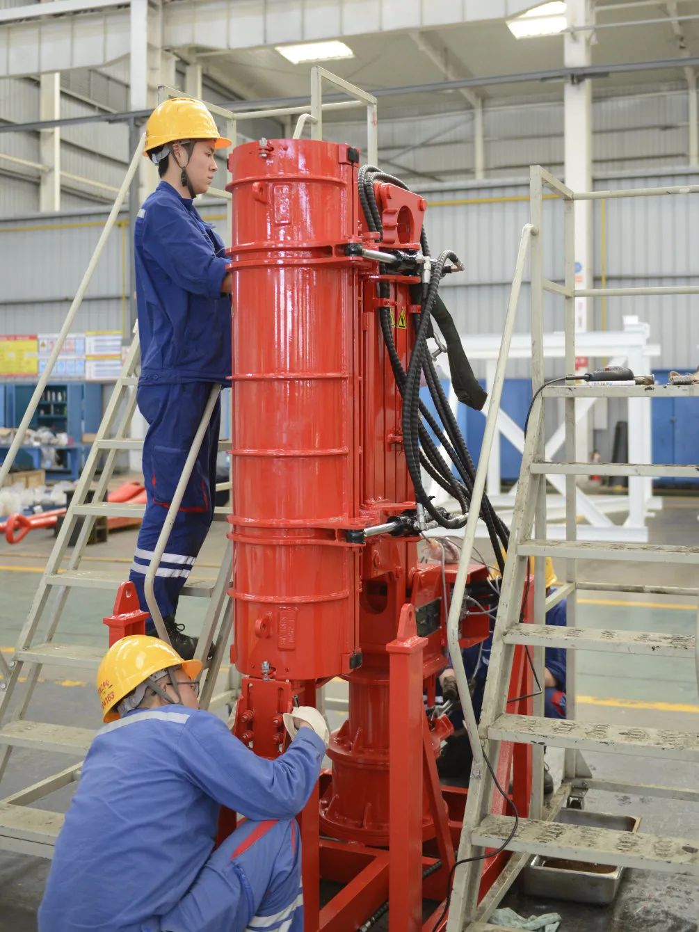 ◆东方宏华装配职员正在举行钻机自动化机具管线组装事情