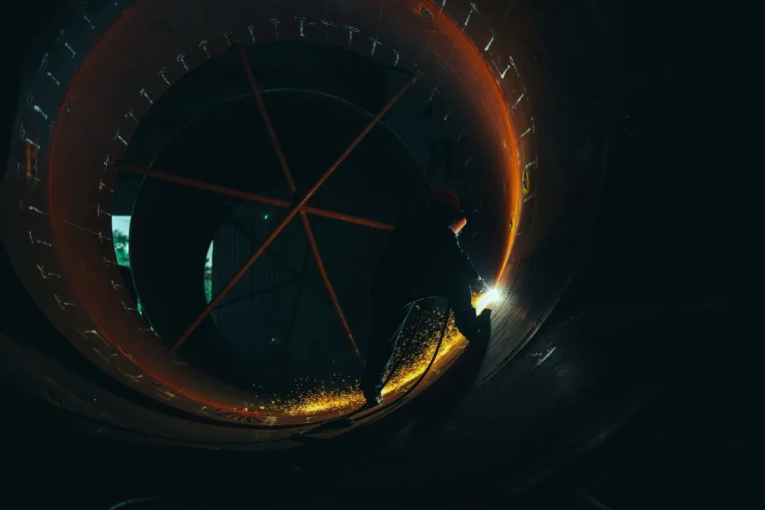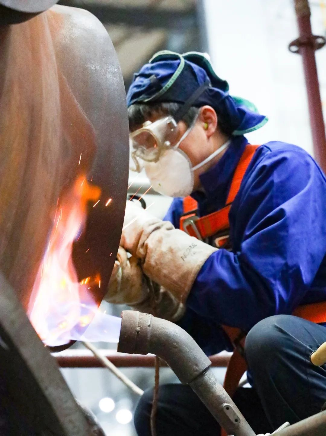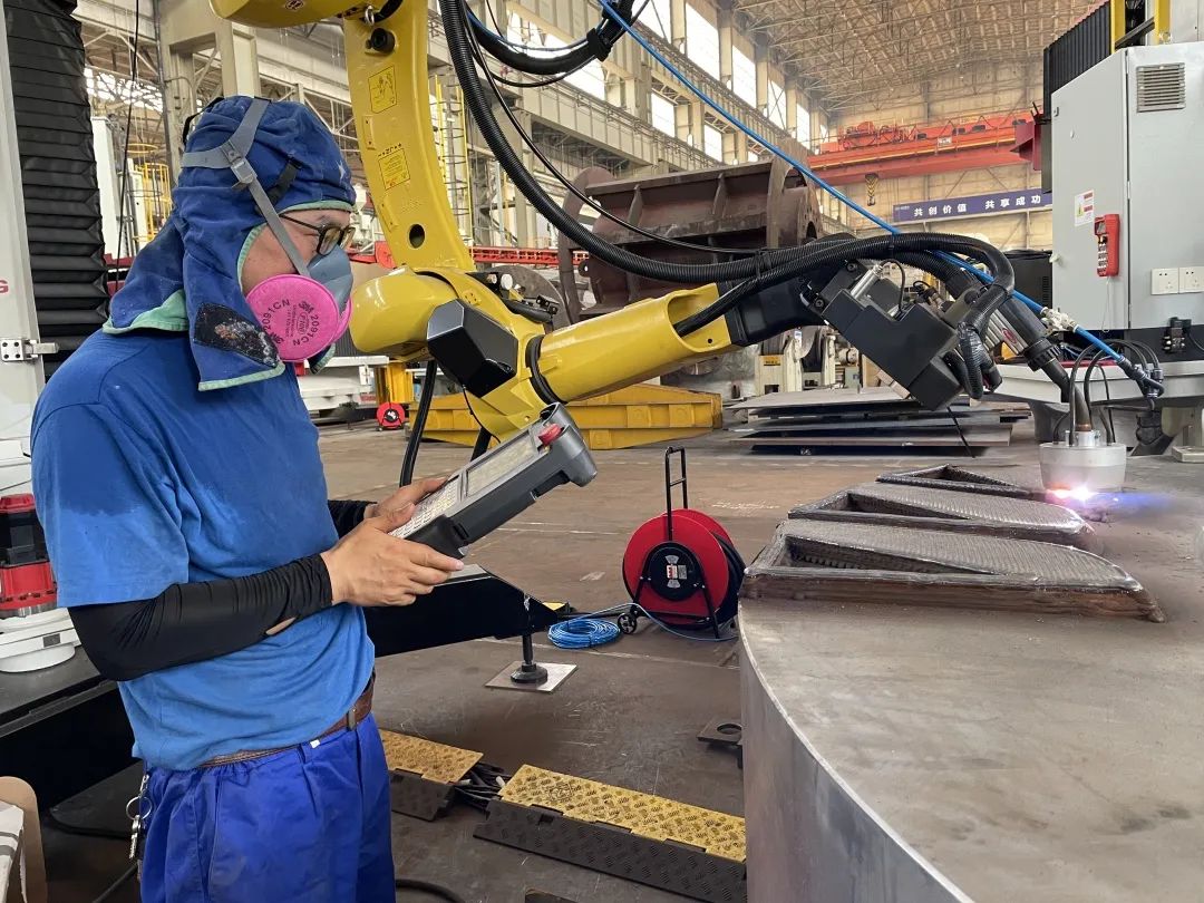 ◆东方重机生产制造部职工正在焊接重大项目产品人孔密封面
