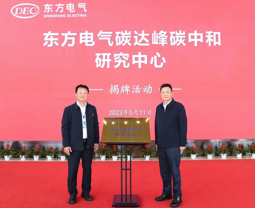 集团公司党组书记、董事长俞培根与双碳研究中心认真人配合为双碳研究中心揭牌。双碳研究中心设在东方研究院,由东方研究院认真建设和一样平常管理事情。