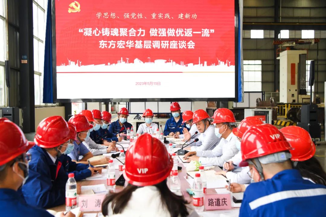 俞培根首先与东方宏华向导班子座谈 ,调研东方宏华党的建设、生产谋划及主题教育开展情形 ,并围绕深化刷新、科技立异、能源装备高质量生长等交流钻研。